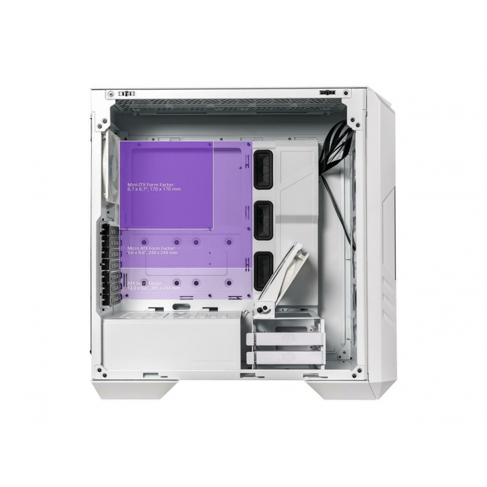 Cooler Master HAF 500. Factor de forma: Midi Tower, Tipo: PC, Color del producto: Blanco. Ubicación de fuente de alimentación: Fondo, Factores de forma de la fuente de alimentación compatibles: ATX. Ventiladores frontales instalados: 2x 200 mm, Diámetro de ventiladores frontales soportados: 140,120,200 mm, Ventiladores traseros instalados: 1x 120 mm. Tamaños de disco duro soportados: 2.5,3.5". Ancho: 224 mm, Profundidad: 516 mm, Altura: 510 mm