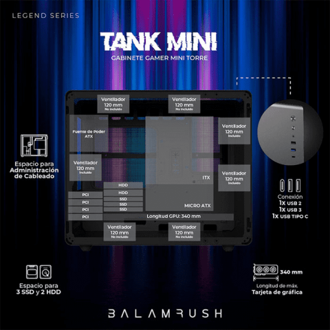 Gabinete TANK MINI GI930 Mini Torre compatible con tarjetas micro mini ATX / ITX. No incluye fuente de poder.