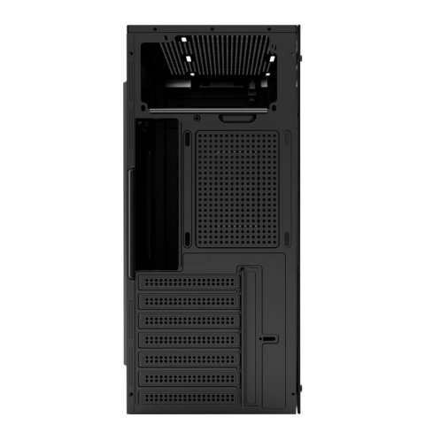 Gabinete GM434 Media Torre compatible con tarjetas ATX, micro ATX, y mini ITX, incluye fuente de poder y cuenta con un espacio para administración de cableado.