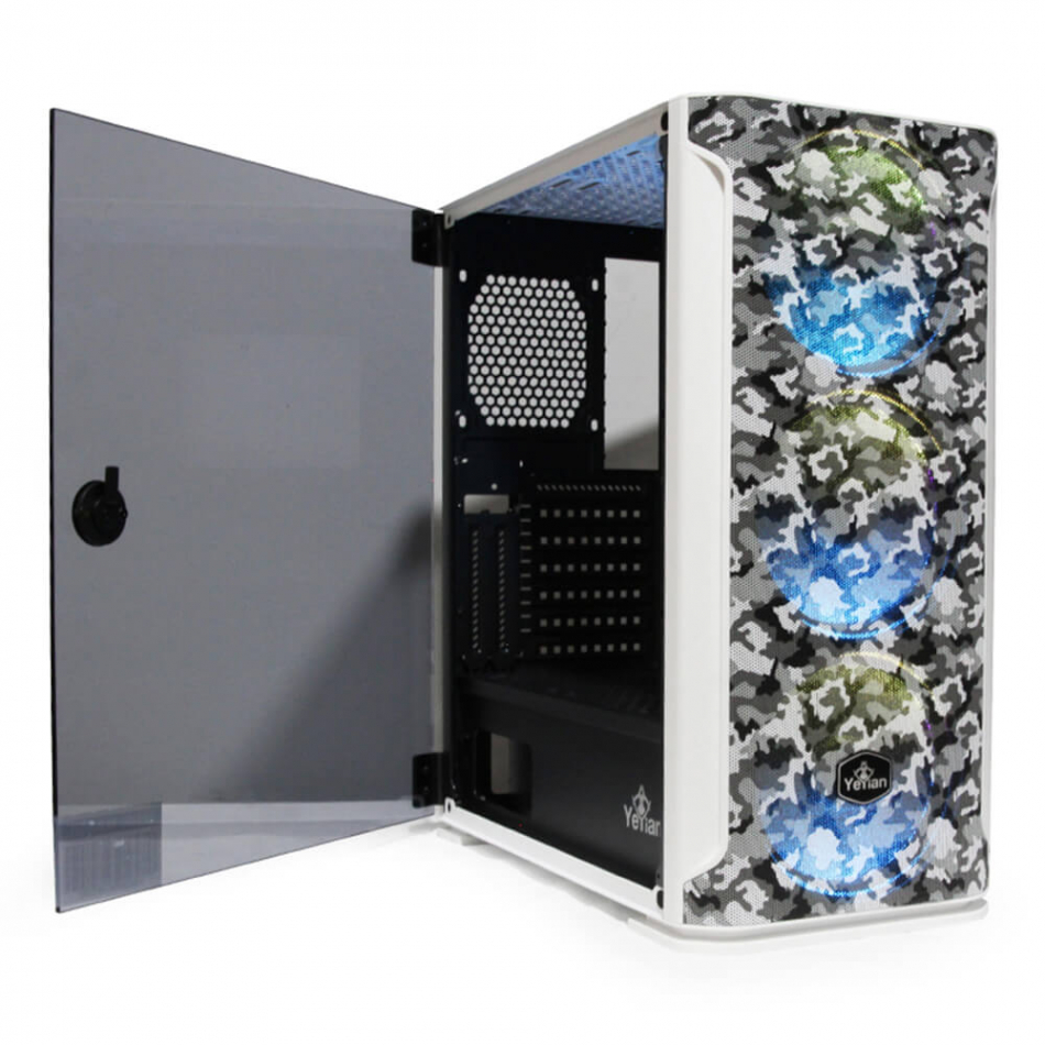 Yeyian Hollow 2500. Factor de forma: Midi Tower, Tipo: PC, Color del producto: Negro, Camuflaje, Blanco. Ubicación de fuente de alimentación: Fondo. Ventiladores frontales instalados: 3x 140 mm, Diámetro de ventiladores frontales soportados: 120,140 mm, Diámetro de ventiladores traseros soportados: 120 mm. Tamaños de disco duro soportados: 2.5,3.5". Ancho: 210 mm, Profundidad: 361 mm, Altura: 453.5 mm