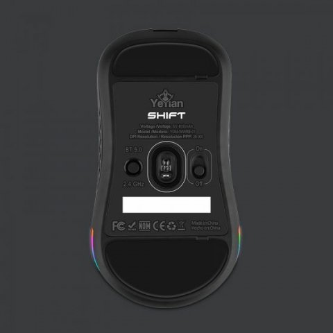 Yeyian YGM-WWRB-01. Factor de forma: Diestro. Tecnología de detección de movimientos: Óptico, Interfaz del dispositivo: Bluetooth, Resolución de movimiento: 26000 DPI, Tiempo de respuesta: 1 ms, Cantidad de botones: 6, Tipo de desplazamiento: Rueda, Aceleración (máx.): 50 G. Iluminación de color: Azul, Verde, Rojo. Fuente de energía: Baterías. Color del producto: Negro