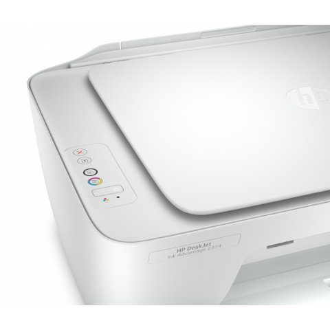 HP DeskJet Ink Advantage 2374. Tecnología de impresión: Inyección de tinta térmica, Impresión: Impresión a color, Resolución máxima: 4800 x 1200 DPI, Velocidad de impresión (color, calidad normal, A4/US Carta): 5.5 ppm. Copiando: Copia a color, Resolución máxima de copia: 600 x 300 DPI. Escaneando: Escaneo a color, Resolución óptica de escáner: 1200 x 1200 DPI. Tamaño máximo de papel ISO A-series: A4. Color del producto: Blanco.