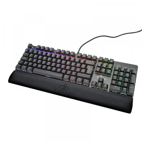 Yeyian YKM-ERGB-01. Formato del teclado: Tamaño completo (100%), Interfaz del dispositivo: USB, Interruptor del teclado: Interruptor mecánico, Diseño de teclado: QWERTY, Teclado, cantidad de teclas: 104. Descansa muñecas. Uso recomendado: Juego. Color del producto: Negro