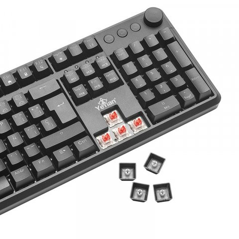 Yeyian Asward Series 3000. Formato del teclado: Completo (100%). Estilo de teclado: Derecho. Interfaz del dispositivo: USB, Interruptor del teclado: Interruptor mecánico, Diseño de teclado: QWERTY, Teclado, cantidad de teclas: 105. Tipo de retroiluminación: LED RGB. Longitud de cable: 1.5 m. Uso recomendado: Hogar. Color del producto: Negro